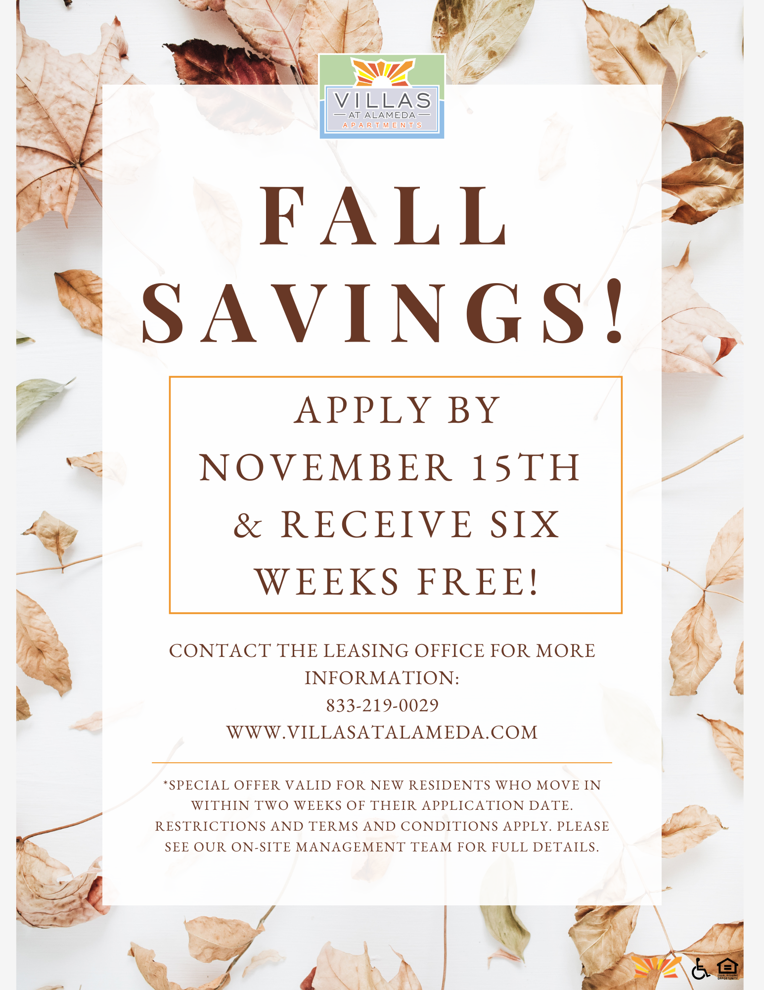 Apply by November 15th & receive six weeks free! Contact the Leasing Office for more information!⤵️ ¡Solicita antes del 15 de noviembre y recibe seis semanas gratis! ¡Contacta con la Oficina de Arrendamiento para más información!⤵️