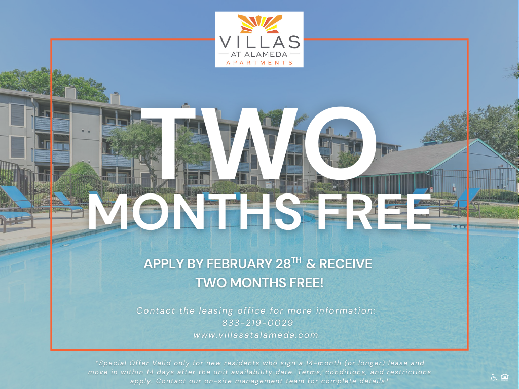 Apply by February 28th & receive two months free on 14+ month leases! Contact the Leasing Office for more information!⤵️ ¡Aplica antes del 28 de febrero y recibe dos meses gratis en contratos de arrendamiento de más de 14 meses! ¡Contacta con la oficina de arrendamiento para más información!⤵️
